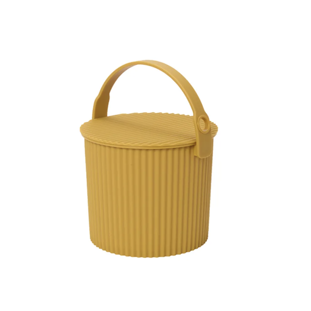 Hachiman reimagines the bucket as a colorful, lidded storage container with endless uses, indoors and out. Crafted in Japan to last a lifetime, it makes for a sleek and sturdy stool, side table, toybox, cooler, planter, wastebasket, recycling bin, and more. The opening in the handle is designed to hold a garden hose for hands-free filling. Easy to stack, each bucket can support up to 330 pounds.